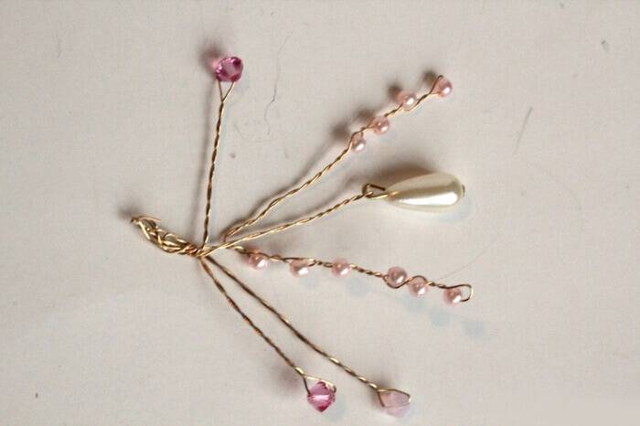 Делаем вот такое дополнительное украшение из скрученной проволоки, бусин и бисера.
