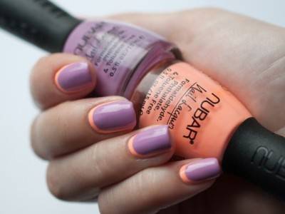 - Покрыть ноготь лаком другого цвета, отступая на 3-4 миллиметра от кутикулы, создавая линию улыбки у кутикулы.