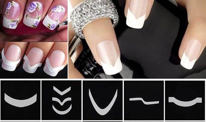 Далее рассмотрим существующие техники. Первая техника французского маникюра – создание френча при помощи специального набора.