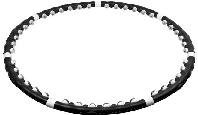 Среди новичков и профессионалов востребован хулахуп health hoop, бывает разного диаметра и веса, от 1100 г до 3100 г. Разборный массажный тренажер с встроенными магнитами, в комплект входят 7-8 частей, поэтому доступна индивидуальная регулировка диаметра. Стоимость от 50-350$, такой разброс цен обусловлен тем, что в этой линейке существует много разновидностей.