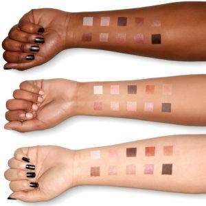 Оттенки в палетке не имеют названий, они просто пронумерованы по порядку. Предлагаем вам взглянуть на свотчи теней Love you so Mochi Eyeshadow Palette Sleek and Chic от NYX. Вы можете сравнить, как смотрятся оттенки на более бледной и на более загорелой и смуглой коже.