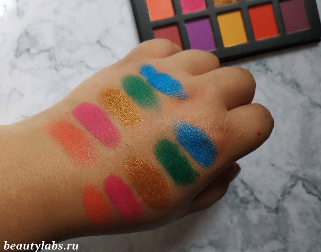 На мой взгляд, это редкое сочетание ярких, и при этом пигментированных теней, по достаточно доступной цене. С ними не нужно плясать с бубном, чтобы получить достойный результат, а базу под тени сейчас использует абсолютно любой человек, которых хочет дожить с макияжем хоты бы до обеда. С помощью это палетки можно делать невероятное количество макияжей, или рисовать неоновые стрелки. Поэтому эту палетку я откладываю к своим любимчикам, где как раз не хватает яркости.