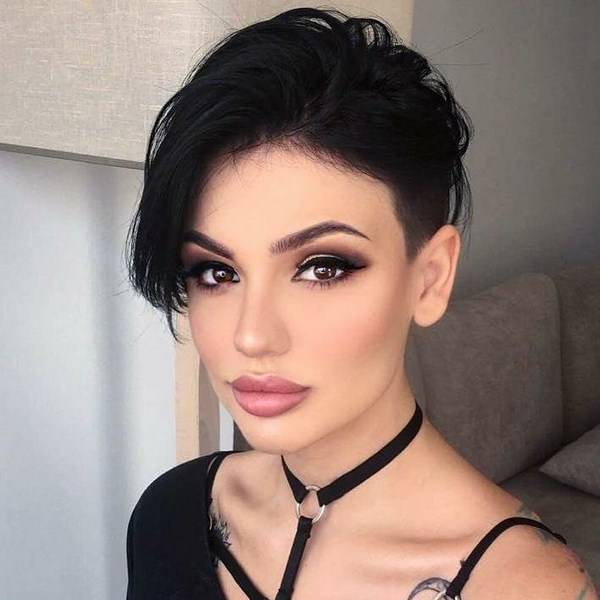 Если вы не хотите думать об укладках, достаточно сделать ультракороткую стрижку пикси. Или максимальном укоротить отдельный участок волос, например – выбрить висок только с одной стороны. Такие прически скорее будут требовать частого посещения салона, стильного окрашивания