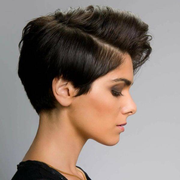 Пикси с челкой наверх – экстремальная и дерзкая укладка. На первый взгляд, она может показаться сложной, однако это совсем не так. Такая стрижка на короткие волосы для женщин в сезоне 2022 добавляет своей обладательнице раскованности и уверенности в себе.