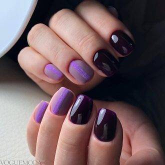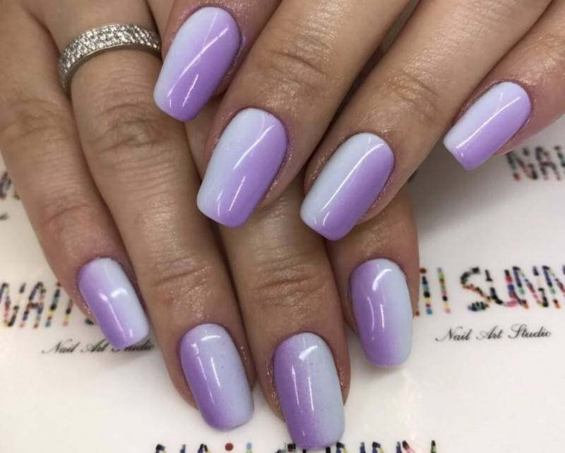 Спокойный и умиротворенный фиолетовый и сиреневый. Лиловый и лавандовый на коротких ногтях смотрятся интересно, как темными, так и в пастельных тонах.
