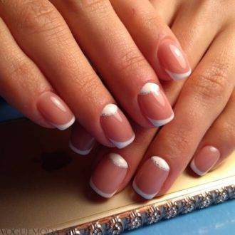 Этот вариант светлого покрытия можно смело называть классикой. Светлым должен быть не только кончик, но и само покрытие ногтевой пластины. Экспериментировать можно, пожалуй, только с формой улыбки.