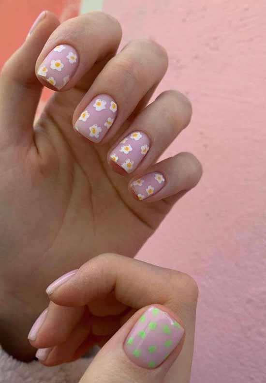Красивый маникюр с рисунком в пастельных тонах, фото
