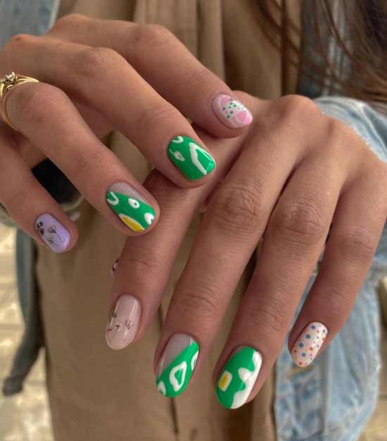 Стоит отметить, что мода на одинаковые ногти осталась в прошлом. Сейчас актуально красить ногти разными цветами.