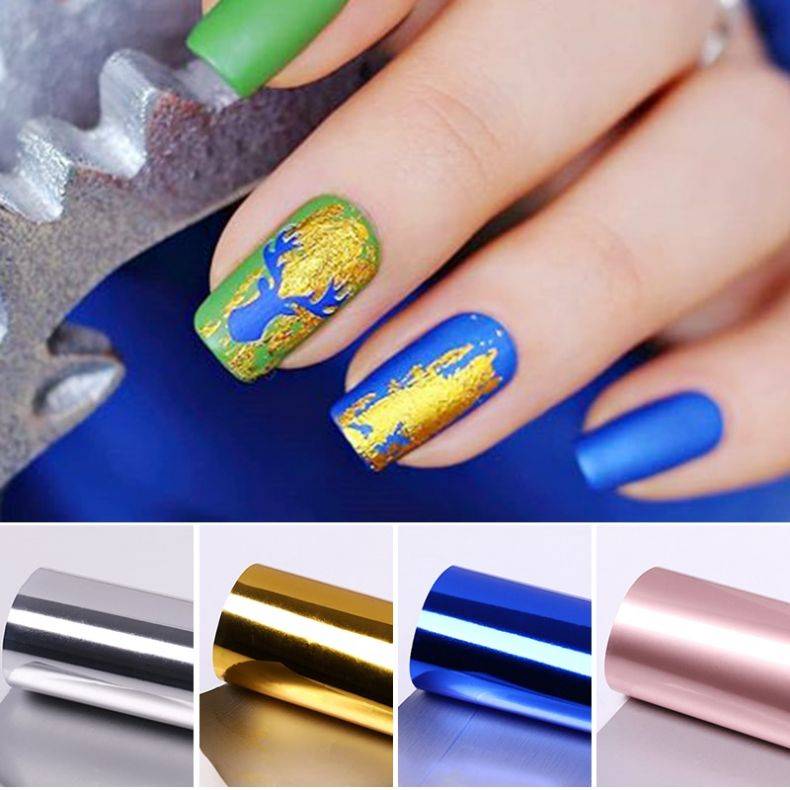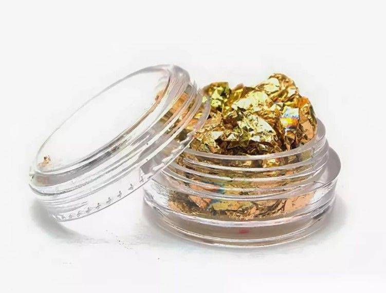 - Дизайн с помощью фольги популярен не только в оформлении из отпечатков, но и в технике «битое стекло». Из кусочков материала мастера создают аппликации, имитации френча, которые на коротких ногтях выглядят очень празднично и интересно.
