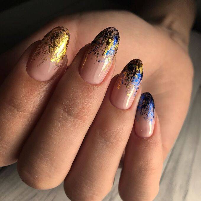 Не любите минимализм? Тогда вы можете сделать «космический» дизайн». Ногти покрывают рисунком, который имитирует звездное небо. Причем сделать такой дизайн может даже не профессионал и дома.