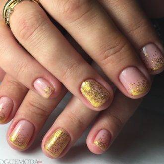 Кажется блестки уже никогда не выйдут из моды нейл арта. Несмотря на всю помпезность, этот вариант дизайна выбирает большое количество женщин. Чтобы снизить эффект новогодней елки, блестки сейчас используют в самом выгодном варианте. Можно покрыть несколько ногтей, а можно растянуть их от кутикулы к краю, создавая эффект градиента.