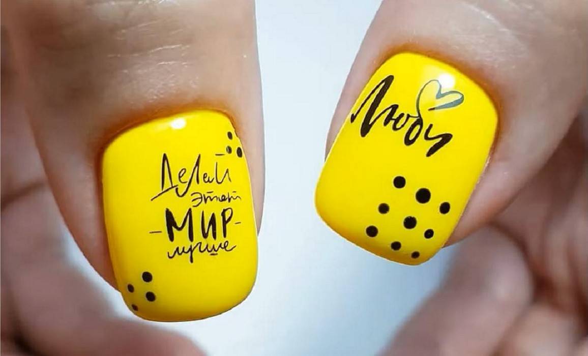 Маленькие ногти в 2024 году актуально украшать небольшими надписями. Чаще всего таким декором украшают большой пальчик. Именно надпись выглядит необычно и интригующе.