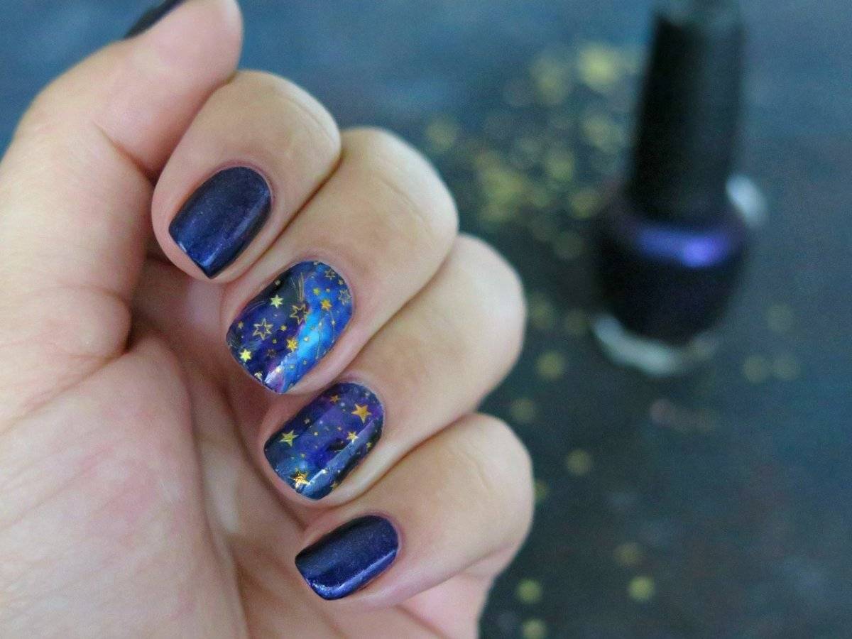 Не любите минимализм? Тогда вы можете сделать «космический» дизайн». Ногти покрывают рисунком, который имитирует звездное небо. Причем сделать такой дизайн может даже не профессионал и дома.