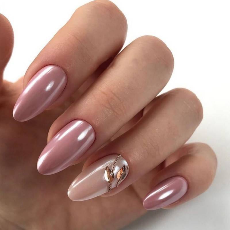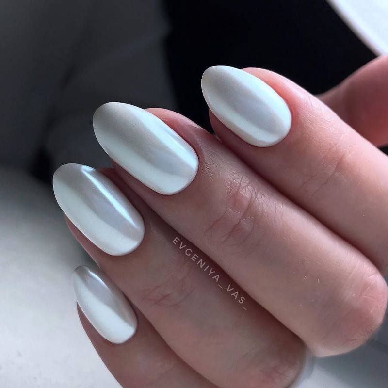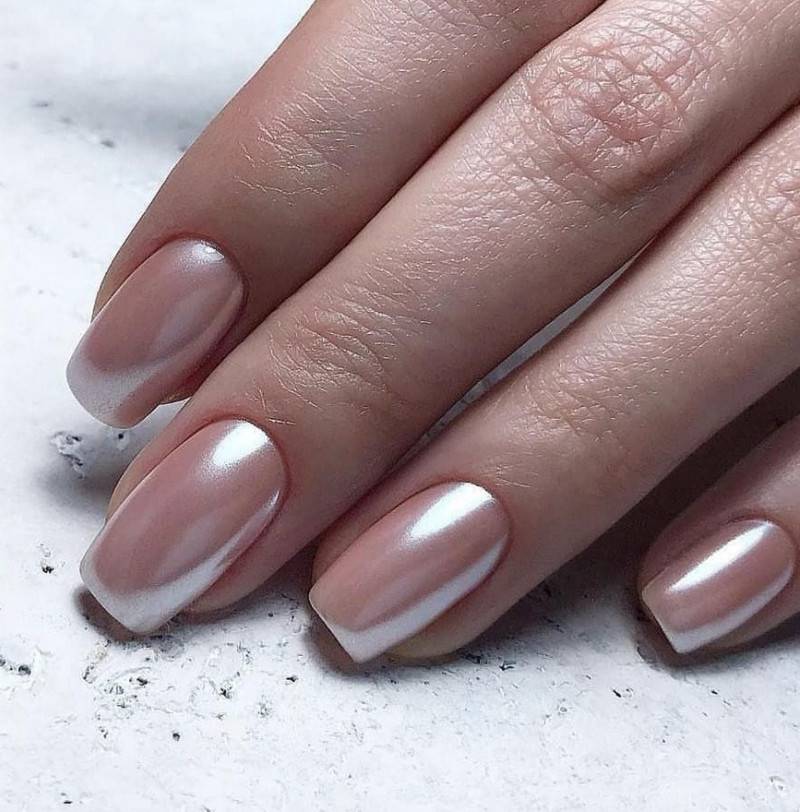 Сейчас доступно большое количество вариантов втирок, начиная от эффекта металлик, заканчивая хамелеоном. Девушки, любящие нежный, но при этом строгий стиль, выбирают жемчужную втирку, которая смотрится очень богато и изысканно.