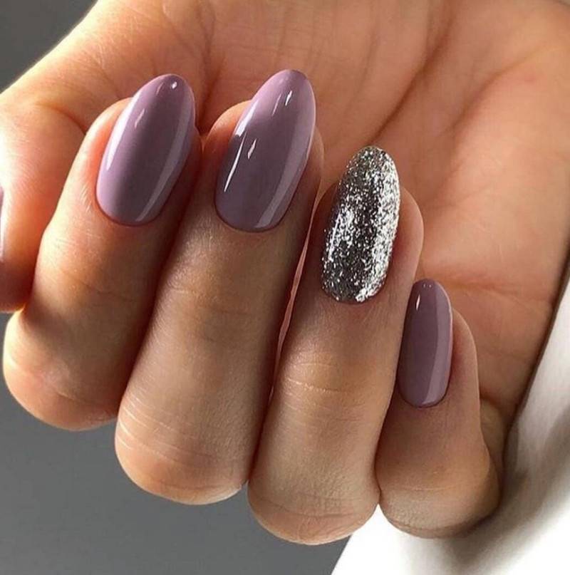 Другой вариант – сделать акцент на 1-2 пальцах, нанеся блестки на всю поверхность ногтевой пластины. Для более праздничного варианта можно использовать глиттер (это те же блестки, но большего размера).