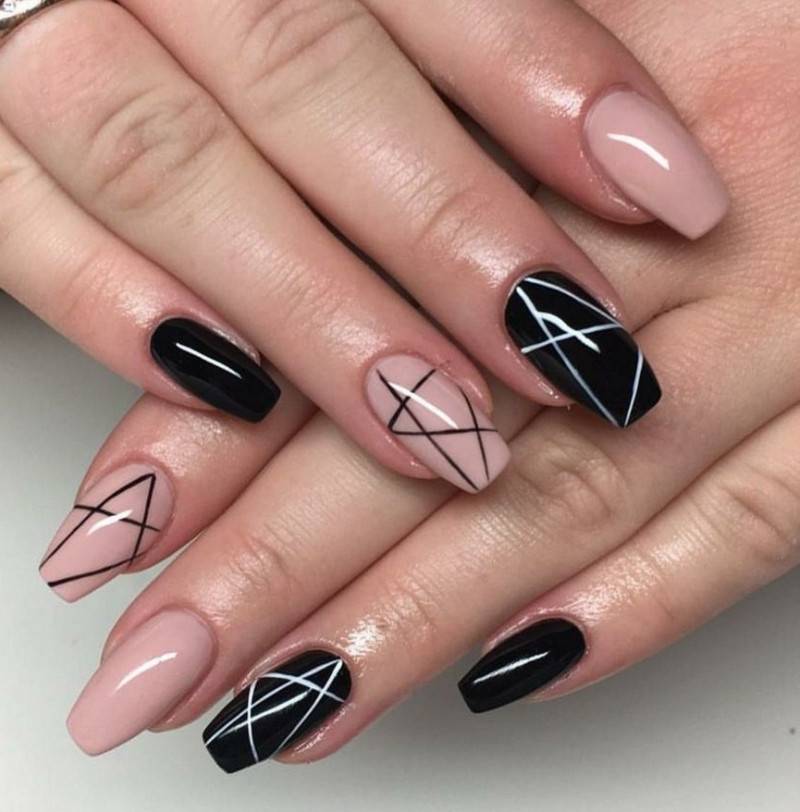 Нежный дизайн ногтей, совмещающий негативное пространство и геометрию.