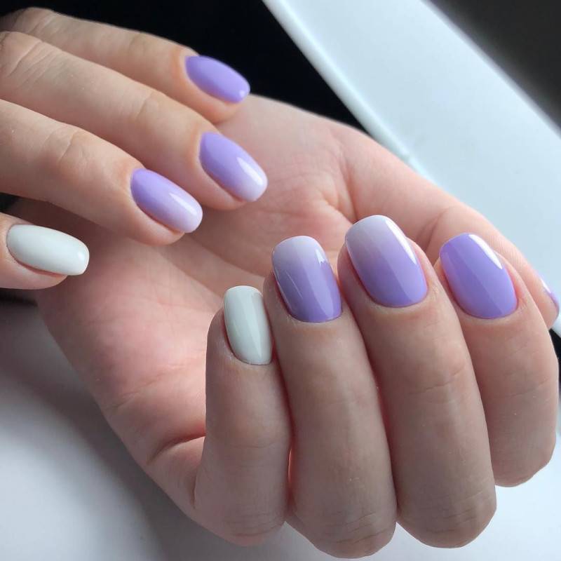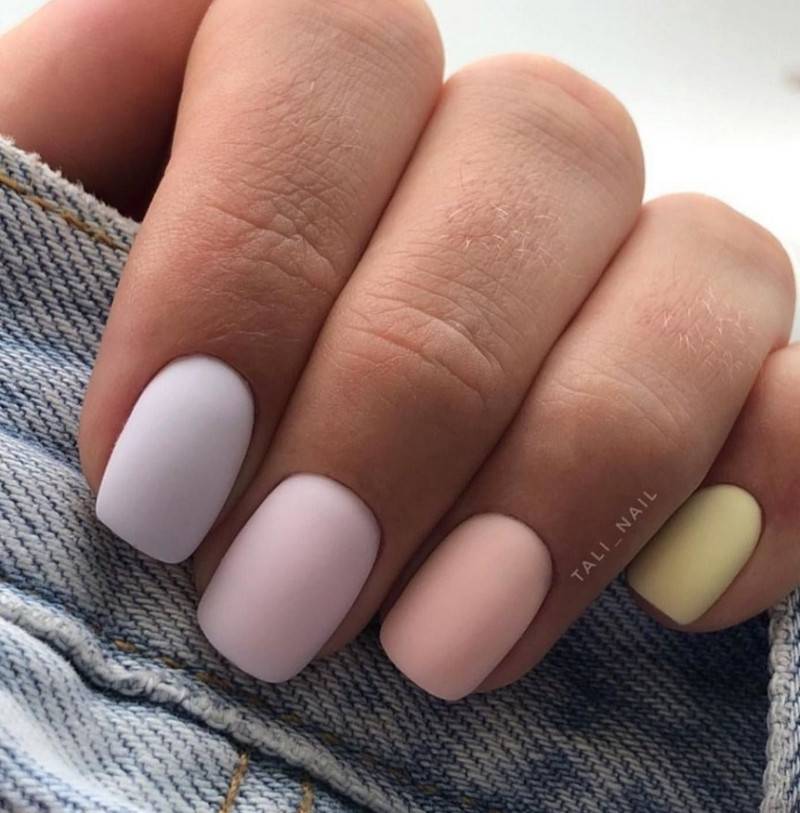 Последние два ногтя будут окрашены в нежный пастельный цвет, отличающийся от базы только белым подтоном.