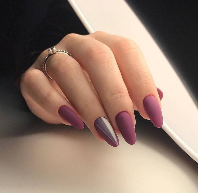 Сочетать для однотонного маникюра нужно следующим образом – несколько ногтей или один выкрашивается в определенный цвет, тогда как другие в другой.