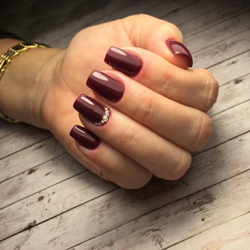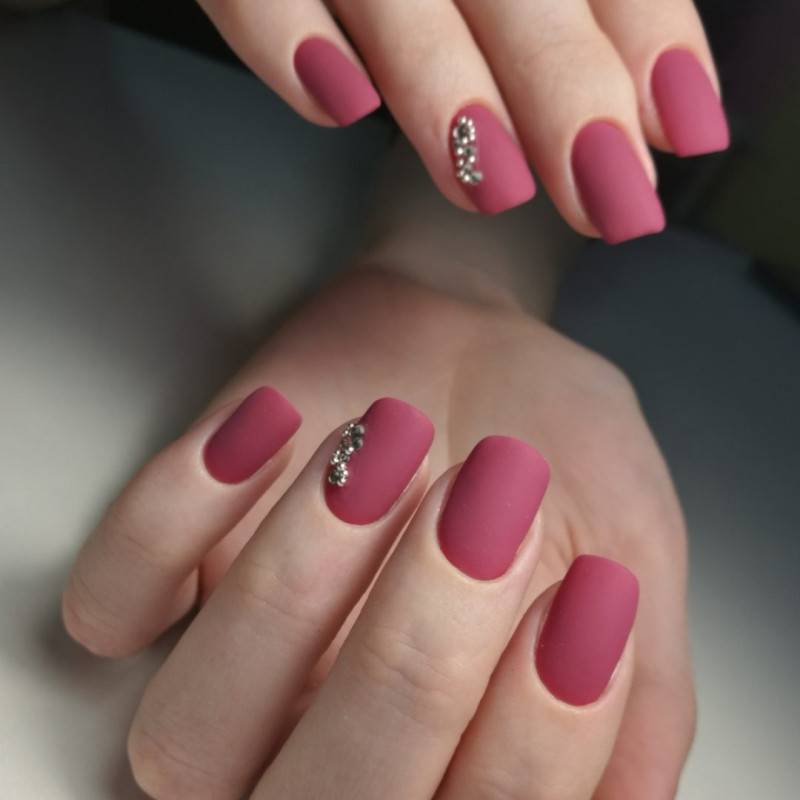 В однотонном маникюре не получится скрыть подтеки и неровности за стразами или другим объемным декором.