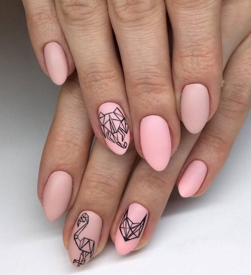 Также, очень стильно и лаконично в минималистичном дизайне смотрится анималистичный принт или рисунки животных, которые можно перенести на ноготки при помощи кисти, наклеек или стемпинга.