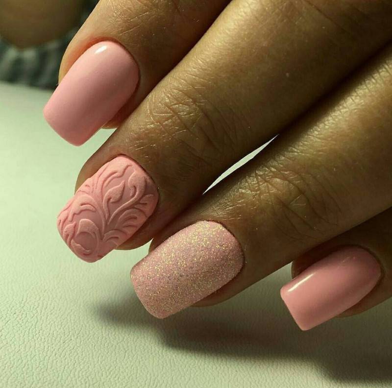 - пастельные, телесные, полупрозрачные оттенки отлично смотрятся в однотонном варианте и лояльнее относятся к незначительным недостаткам на ногтевой пластине. Используйте для маникюра бледно-розовые, кремовые, бежевые оттенки.