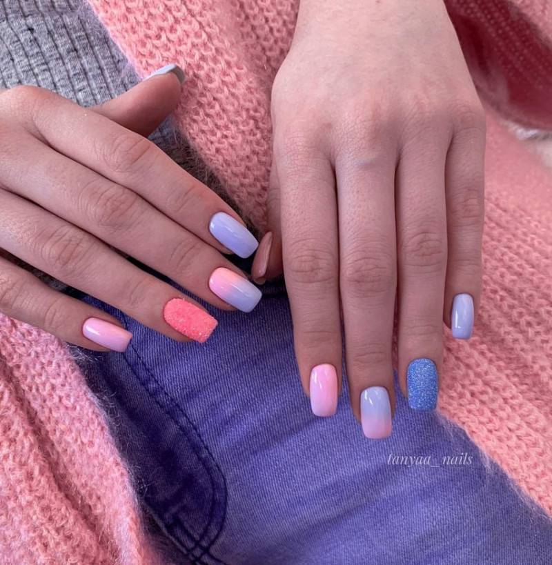 Дизайн гель-паутинкой и розово-голубым цветом.