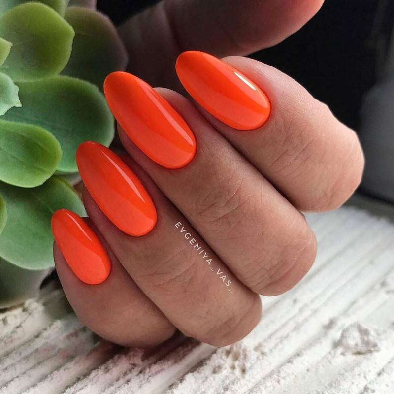 Яркий летний однотонный маникюр 2021