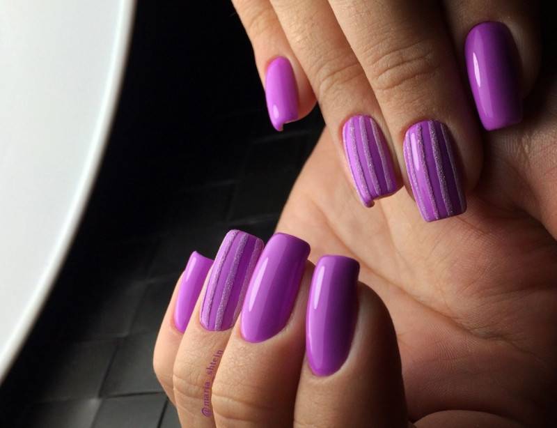 Также очень стильно смотрятся рисунки в виде полосок или точек в минималистичном дизайне ногтей. Можно на нюдовом или прозрачном фоне нарисовать по одной горизонтальной или вертикальной полоске на каждом ноготке. Или на таком же фоне нарисовать по одной точке у основания каждого ногтя, причем сделать это можно как одним цветом, так и при помощи разных цветов.