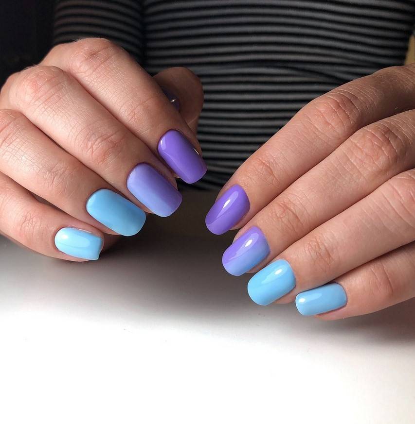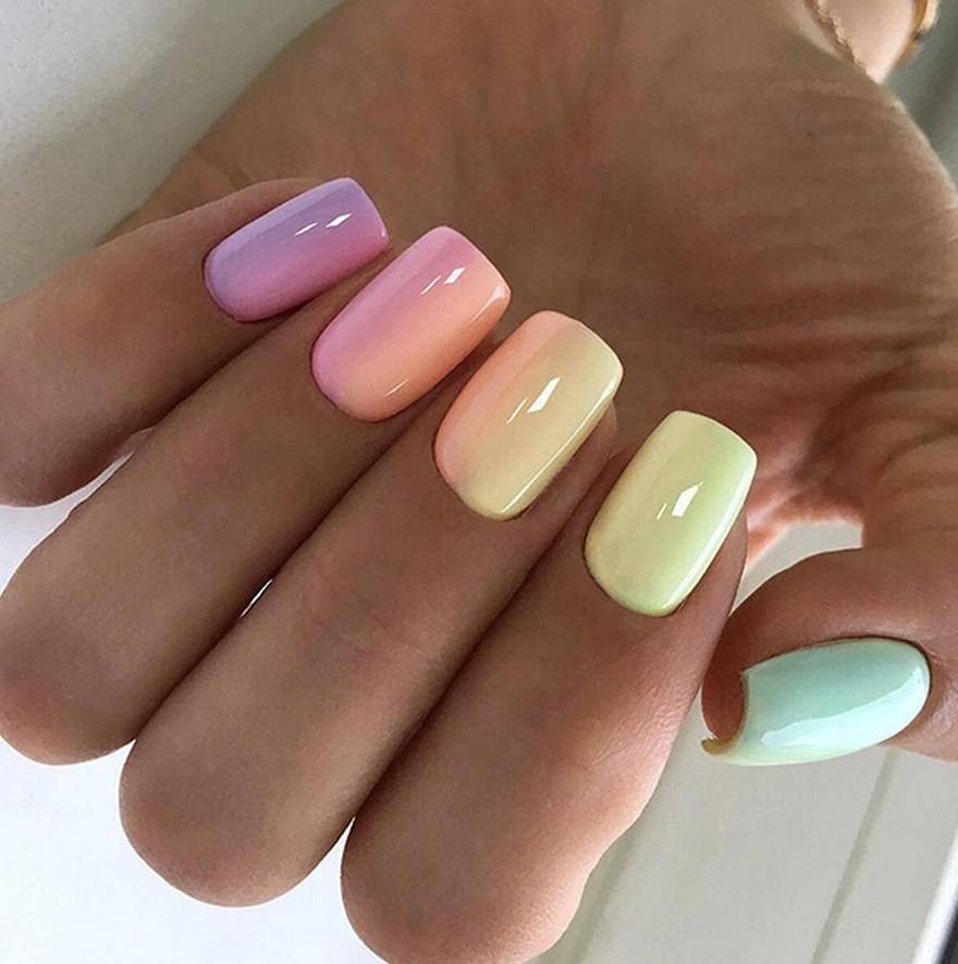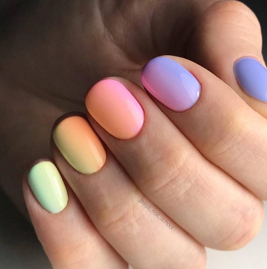 градиент с переходом от ногтя к ногтю, а не на одной пластине;