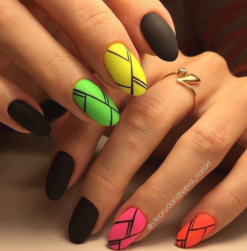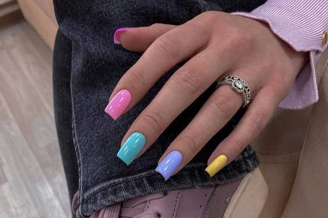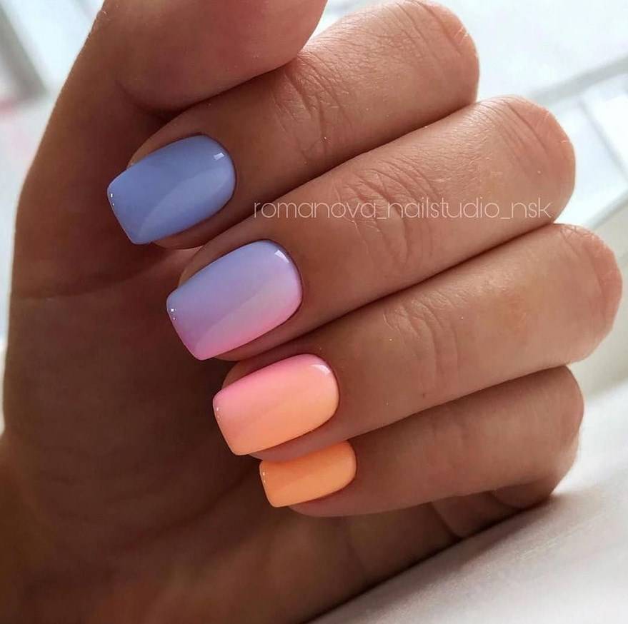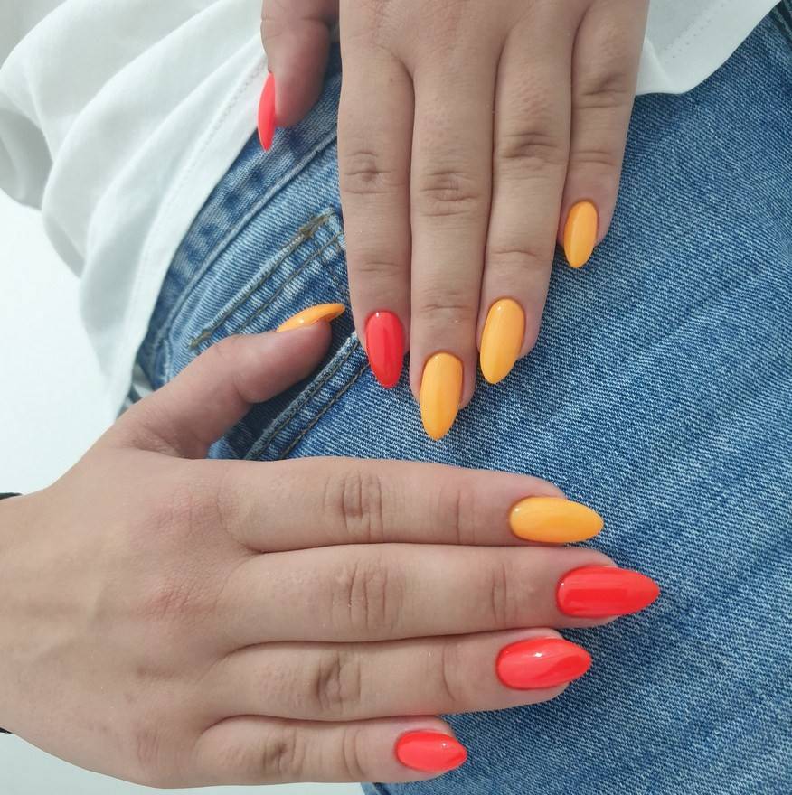 Ягодный, розовый, малиновый оттенки добавляют образу романтичности. Поэтому маникюр лучше всего будет выглядеть в сочетании с платьями. Для путешествий выбирайте более смелые, насыщенные и даже неоновые тона. Это может быть зеленый, оранжевый или желтый цвет. Отлично смотрится синий и красный маникюр. В отличии от предыдущих вариантов, он будет более сдержанным. Каждый из вариантов — прекрасный выбор для жаркого лета.