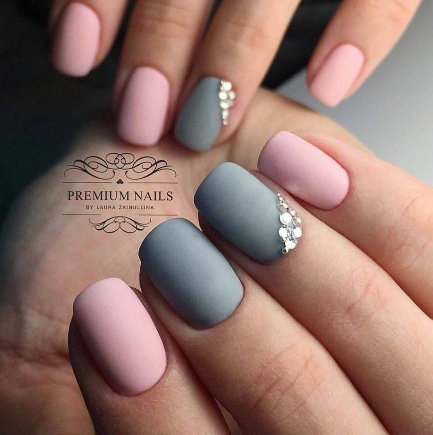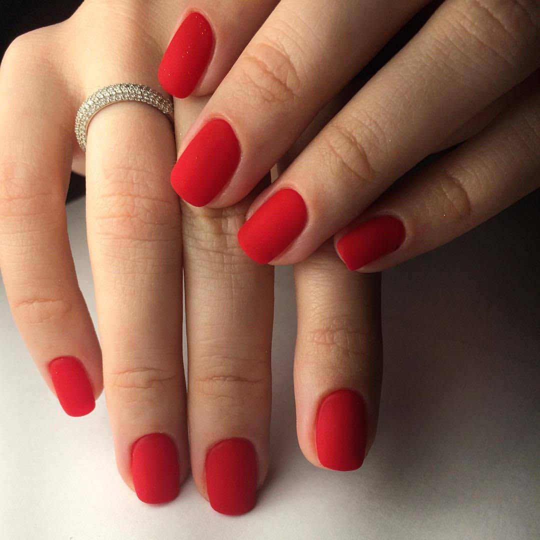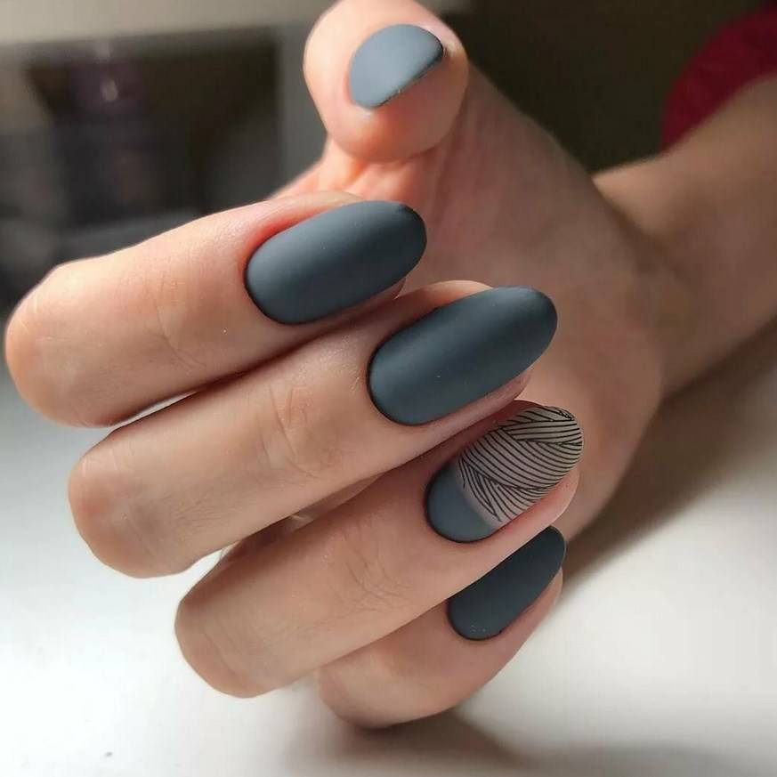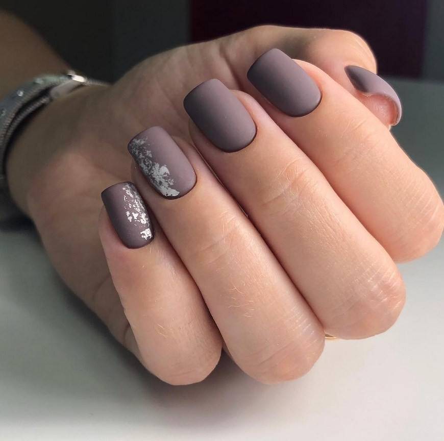Однотонное покрытие гель-лаком с матовым финишем выглядит благородно и оригинально. Этот вариант одинаково хорош как для светлого, так и для темного покрытия. Разнообразить маникюр помогут стразы, блестки, камифубуки, комбинации с глянцевым покрытием.