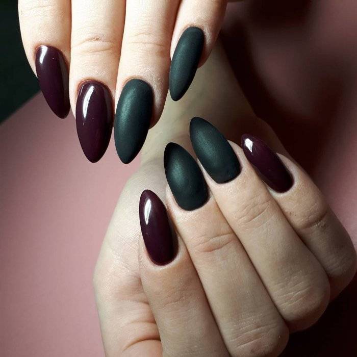 - еще одно решение для монохромного маникюра – это сочетание матовой и глянцевой текстуры
