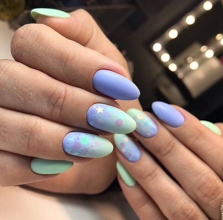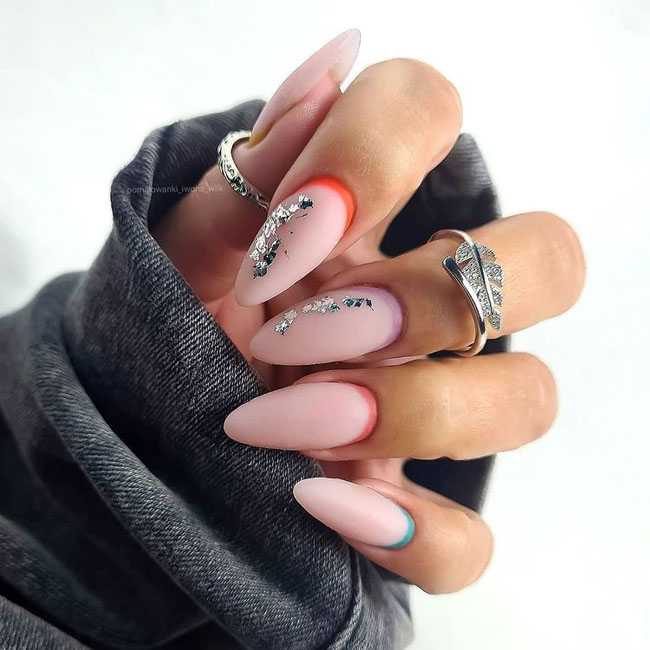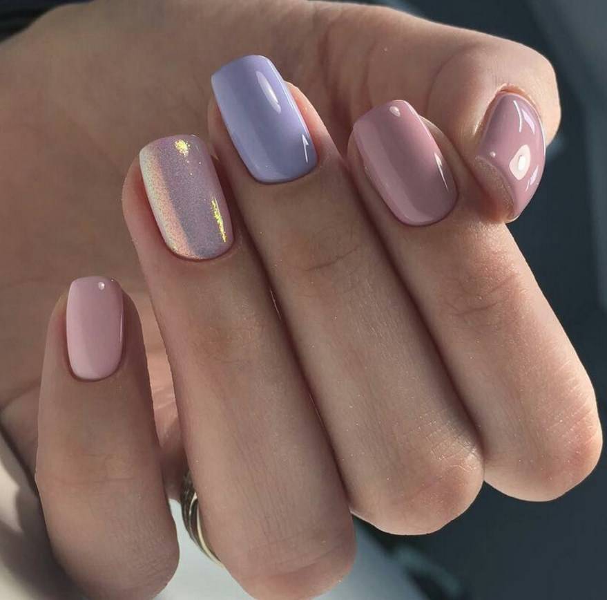 Последние два ногтя будут окрашены в нежный пастельный цвет, отличающийся от базы только белым подтоном.