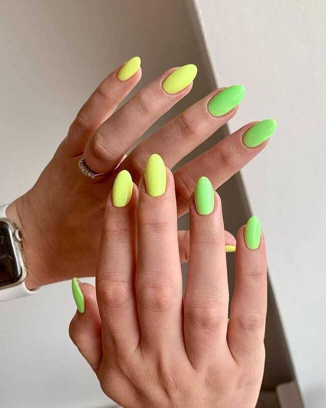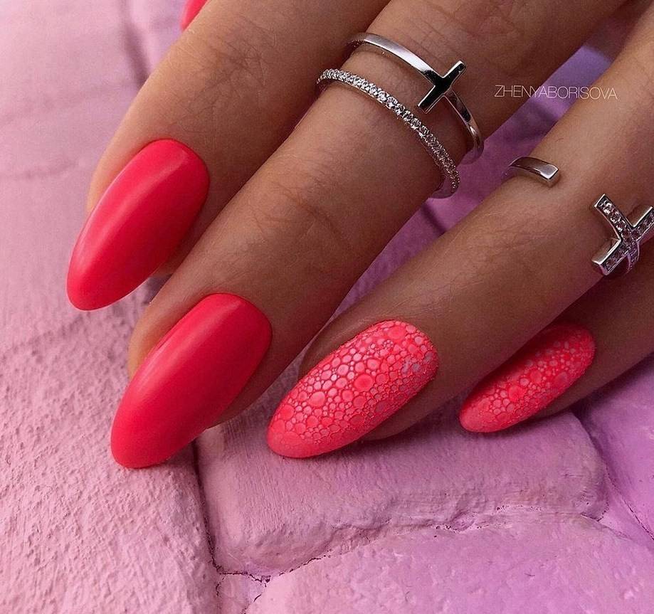 Яркий летний однотонный маникюр 2021