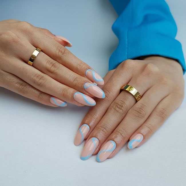Дизайн гель-паутинкой и розово-голубым цветом.