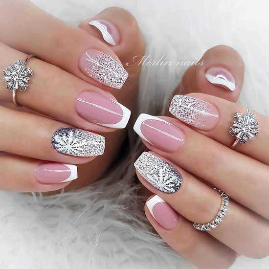 На новогодние праздники всем нравится воплощать на ногтях самые интересные идеи маникюра. Кроме того, часто выбор делается в пользу френча, белого или серебристого маникюра. И здесь главное не переборщить с декором, рисунками, чтобы получился шикарный вариант.