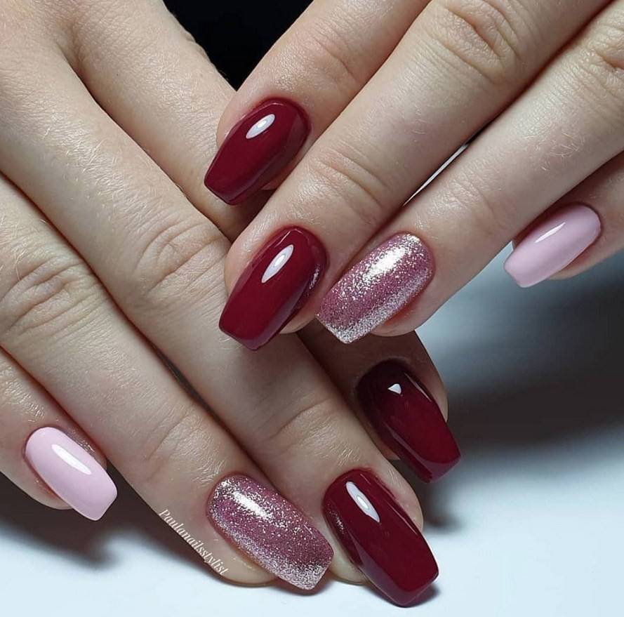 Классическим вариантом дизайна считаются нейл-арты в телесных, розовых, красных оттенках.
