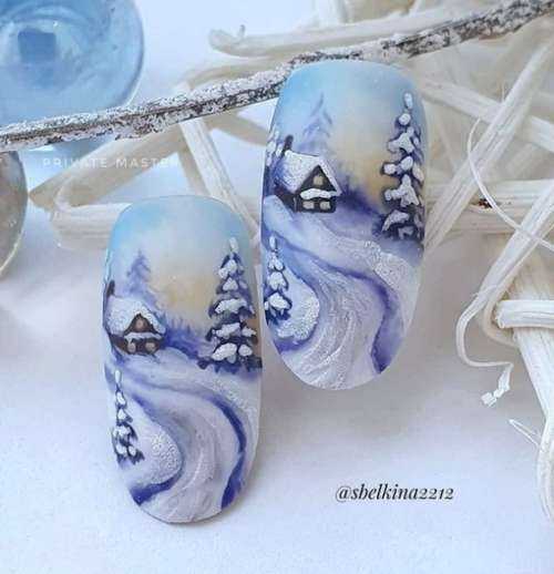 Зимние рисунки на ногтях