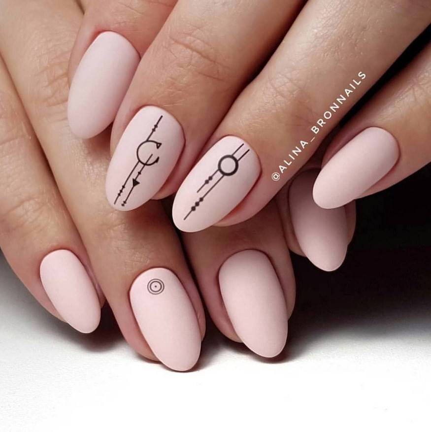 Нежный дизайн ногтей, совмещающий негативное пространство и геометрию.