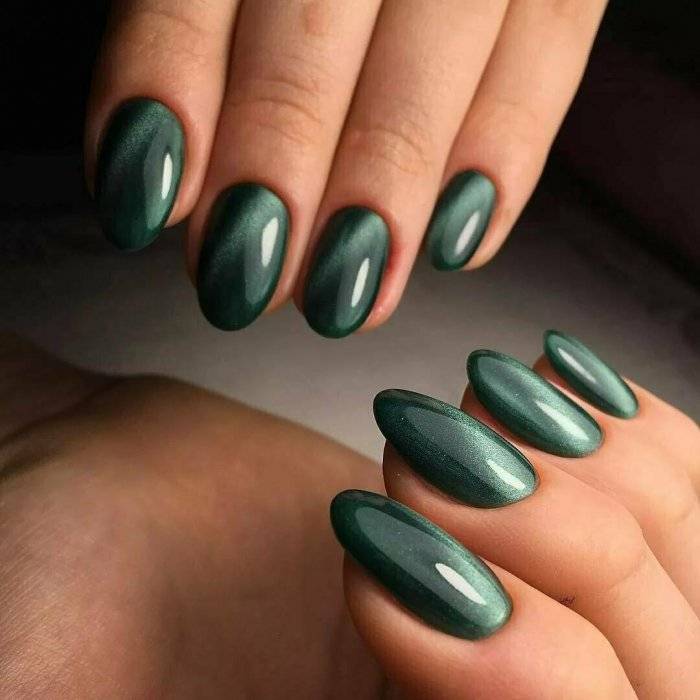 - для однотонного маникюра можно использовать гель-лаки с добавлением шиммера, глиттера, голографических частиц, слюды или кусочек “рваной” фольги. Такой маникюр отличается дуохромным или хамелеоновым эффектом, красиво переливается при солнечном свете. Гель-лаки со “спецэффектами” смотрятся стильно и самодостаточно, поэтому могут быть использованы для создания монохромных нейл-артов.