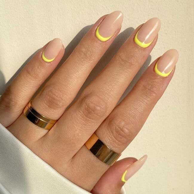 Желтый маникюр с рисунком, выполненным благодаря слайдер-дизайну.