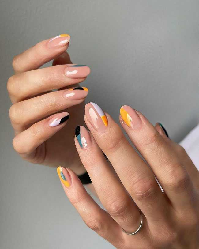 Если хочется чего-то более живого и динамичного, то можно использовать сочетание нескольких цветов. Вариантов такого маникюра может быть настолько много, что можно каждый день создавать новые композиции и не повторяться.