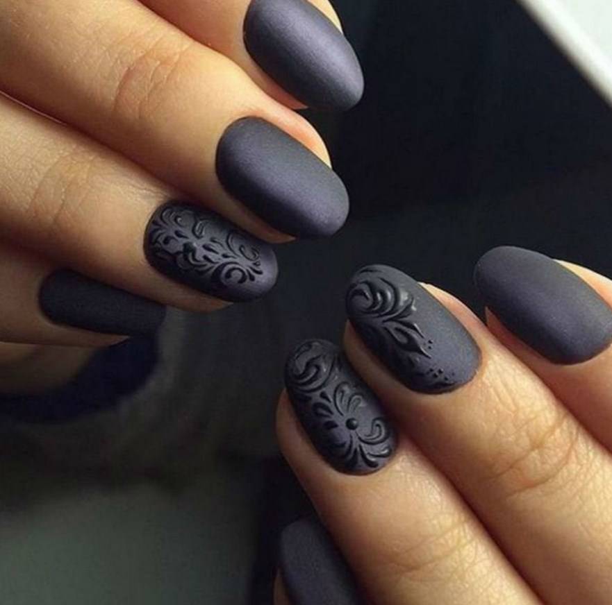 Бархатистое покрытие делает цветовые оттенки намного глубже, благороднее. Если глянец сразу бросается в глаза, то матовые ноготки оставляют стойкое, благоприятное впечатление об их хозяйке. Такой дизайн сохраняет загадку, смотрится аристократично и респектабельно, уместен даже на королевском приеме.
