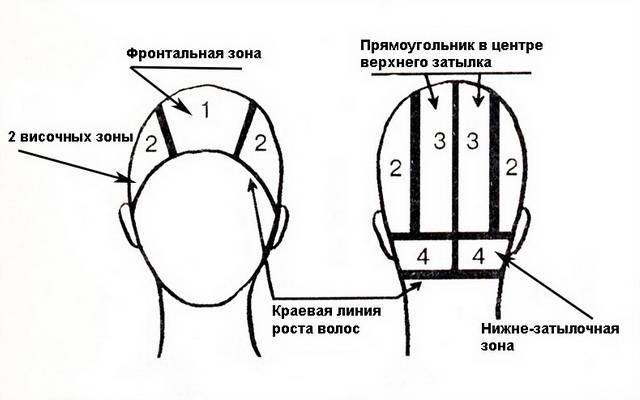 Для облегчения выполнения стрижки парикмахеру необходимо знать зоны головы. Они разделяются в соответствии с порядком работы. Способ разделения определен линиями будущей прически.