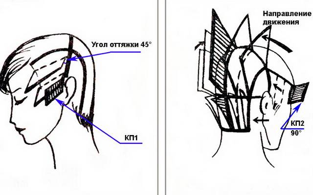 - Необходимо учитывать, что именно на этом участке угол оттяжки пряди в 45° располагается горизонтально.
