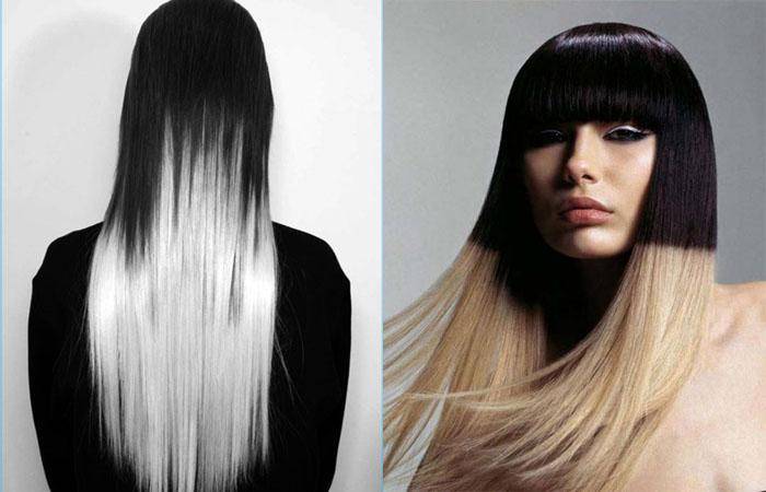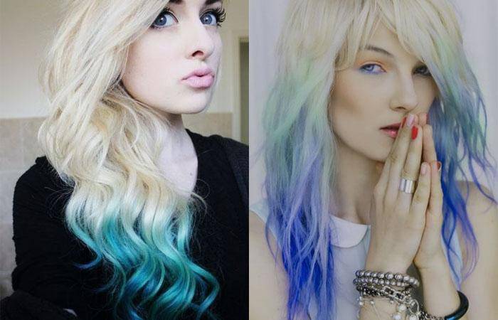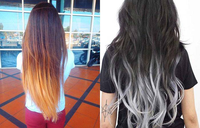 При такой окраске локонов, в независимости от стрижки и длины волос, полностью меняет стиль девушки. В основном берется базовый цвет и его множество оттенков. Некоторые девушки всё же оставляют свой родной цвет, и плавный переход делают в другой оттенок. Но, более храбрые окрашивают изначально волосы в тёмный тон (чёрный), а после добавляют цвет неона (ярко-синий). Переход в таком случае плавный. С первого раза невозможно понять, где же произошло изменение цветов.