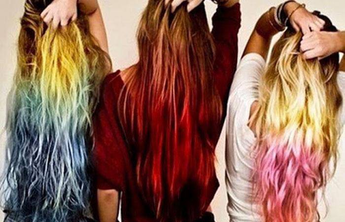 Для окрашивания волос используются яркие цвета: Малиновый, синий, фиолетовый и зеленый. Сочетание их в случайных группах может создать неожиданный эффект. Часто обладательницы каскадных стрижек используют эти тона, чтобы подчеркнуть текстуру волос.