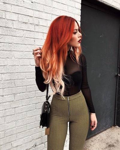 Этот цвет позволяет экспериментировать. На пылающей гамме эффектно смотрится цветное окрашивание. Можно сделать волосы ярче, а кончики темнее. Классическое исполнение предполагает окрашивание прикорневой зоны ярко-красным, кончики песочным оттенком, а переход можно выполнить в медном тоне.