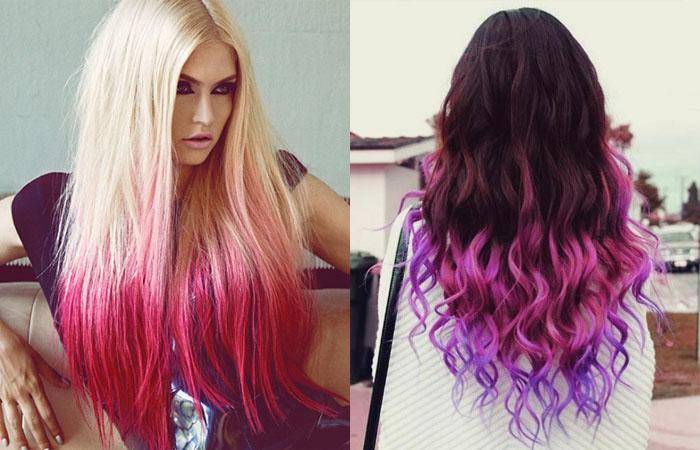 Интересным решением для смены имиджа может быть цветное омбре. Для молодых модниц, которым нравится цветное мелирование, можно предложить различные комбинации с колором. Даже если в итоге останетесь недовольны, все можно подправить – волосы затонировать по-другому, концы немножко подстричь.