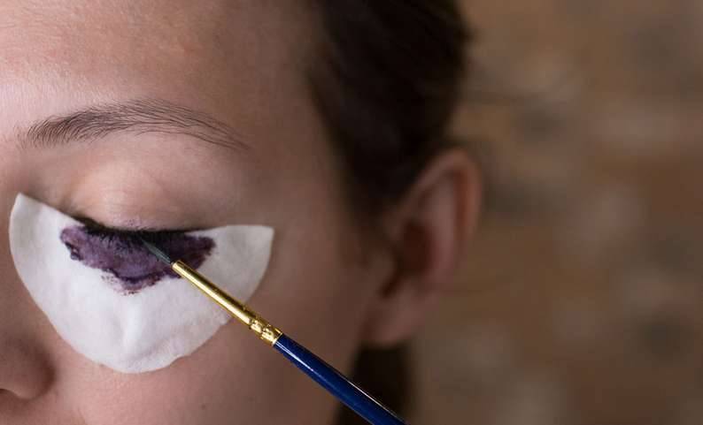 - Разрежьте ватные кружочки пополам, одну половинку промокните водой и приложите под нижний ряд ресниц.